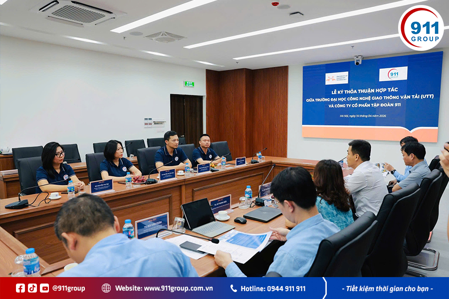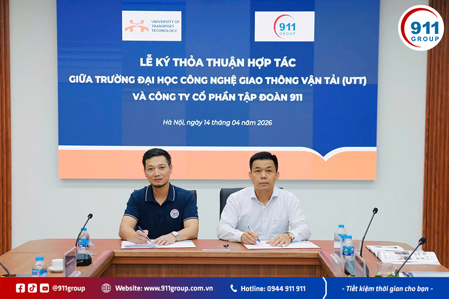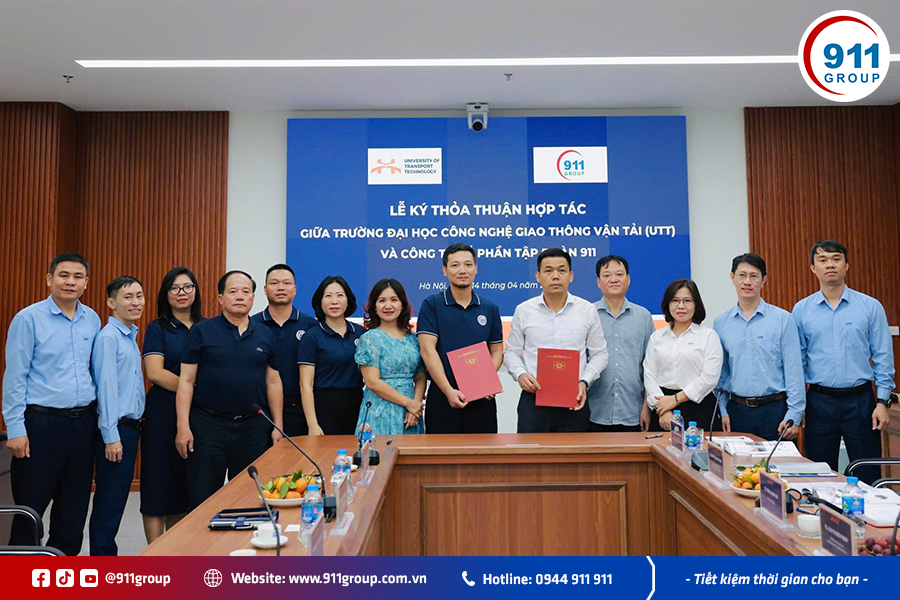 Ngày 14/04/2026, Công ty Cổ phần Tập đoàn 911 (911 Group) đã chính thức tổ chức lễ ký kết thỏa thuận hợp tác chiến lược với Trường Đại học Công nghệ Giao thông Vận tải, mở ra bước phát triển mới trong mối quan hệ giữa doanh nghiệp và nhà trường trong lĩnh vực đào tạo nguồn nhân lực chất lượng cao.