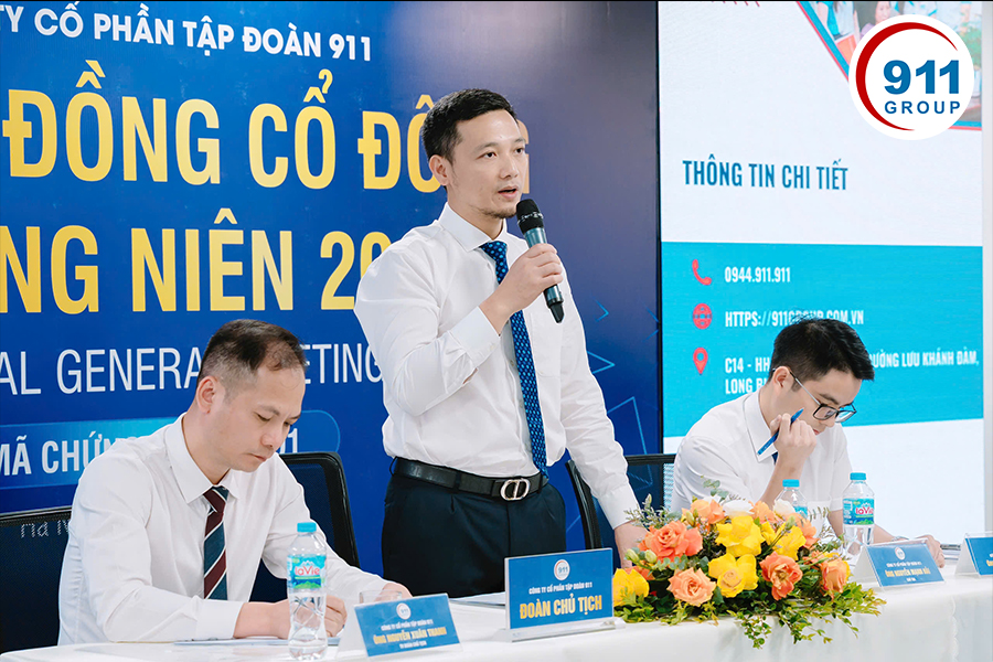 “Chúng tôi cam kết đồng hành cùng cổ đông trong mọi quyết định quan trọng, đặt lợi ích tập thể lên hàng đầu và tiếp tục đổi mới để 911 giữ vững vị thế là một tập đoàn đa ngành hàng đầu Việt Nam.”