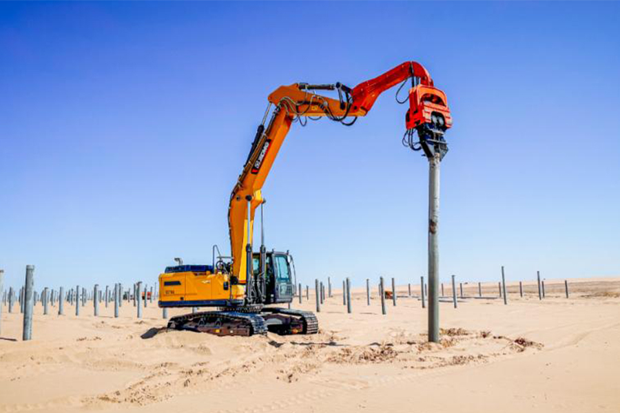Khác với các dự án thông thường trước đây, máy đào XCMG lần này chủ yếu chịu trách nhiệm đặt cọc quang điện.