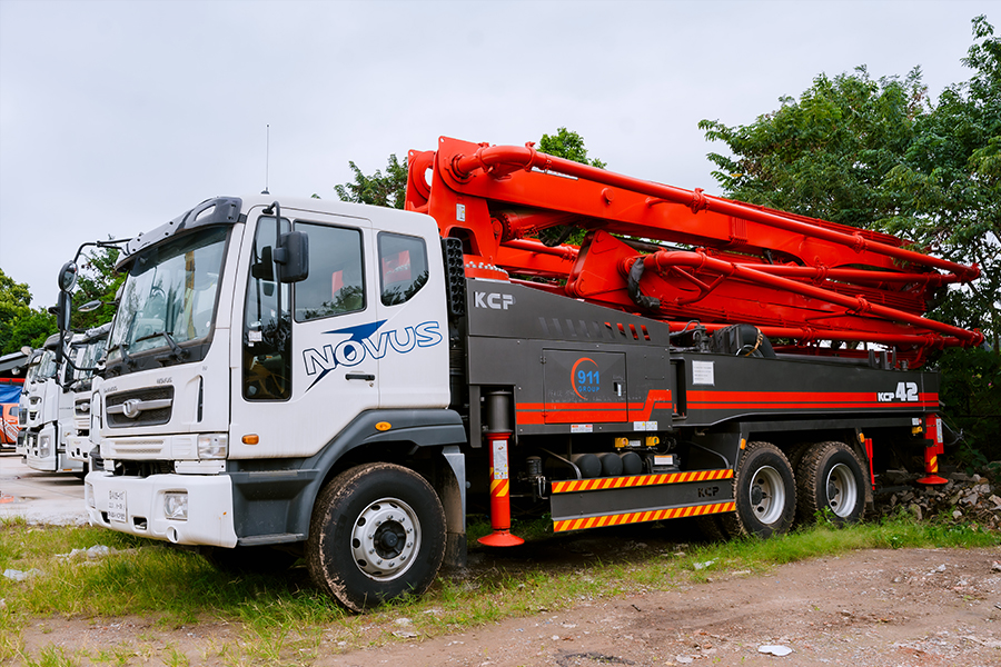 5, Khi xe bơm đến công trường, vận hành bơm phải quan sát vị trí đứng cho hợp lý nhất.