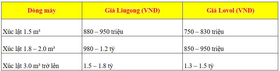 ➡️ Lovol rẻ hơn trung bình từ 10–15% so với Liugong ở cùng phân khúc.