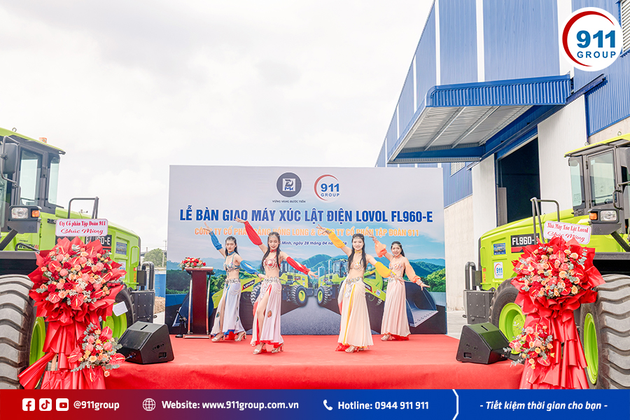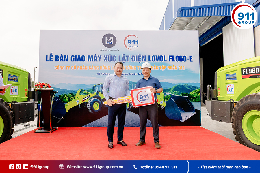 Sáng ngày 28/04/2026, Tập đoàn 911 đã tổ chức thành công Lễ bàn giao máy xúc lật điện LOVOL FL960-E cho Công ty Cổ phần Cảng Hồng Long, chính thức đưa dòng máy xúc lật điện LOVOL đầu tiên tại Việt Nam vào vận hành thực tế. Sự kiện này đánh dấu cột mốc quan trọng trong việc ứng dụng thiết bị công trình xanh, góp phần thúc đẩy xu hướng khai thác bền vững trong lĩnh vực cảng biển và logistics.