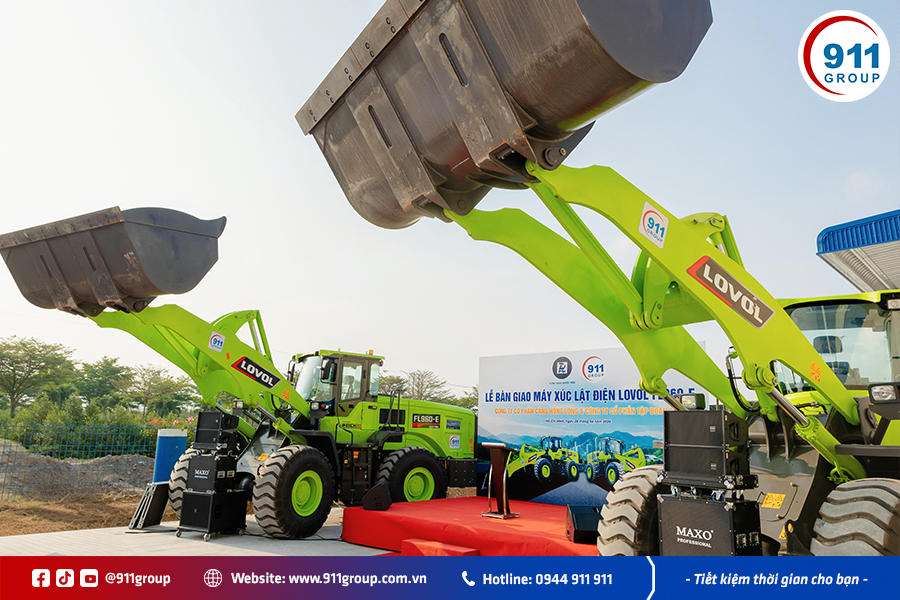 Trong bối cảnh xu hướng chuyển đổi xanh ngày càng được nhiều doanh nghiệp quan tâm, Tập đoàn 911 đã nhanh chóng đón đầu thị trường bằng việc đưa các dòng thiết bị công trình sử dụng năng lượng sạch vào Việt Nam. Tiêu biểu là việc bàn giao thành công máy xúc lật điện LOVOL FL960-E, dòng máy xúc lật điện đầu tiên được giới thiệu tại thị trường trong nước. Đây không chỉ là bước tiến mới trong hoạt động kinh doanh của doanh nghiệp mà còn thể hiện tầm nhìn dài hạn của Tập đoàn 911 trong việc đồng hành cùng khách hàng xây dựng mô hình sản xuất thân thiện với môi trường.