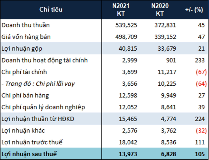 Cụ thể, nhờ tăng cường đẩy mạnh bán hàng cũng như mở rộng mạng lưới phân phối trong nước, doanh thu thuần của NO1 trong năm 2021 ghi nhận gần 540 tỷ đồng, tăng 45% so với năm 2020.