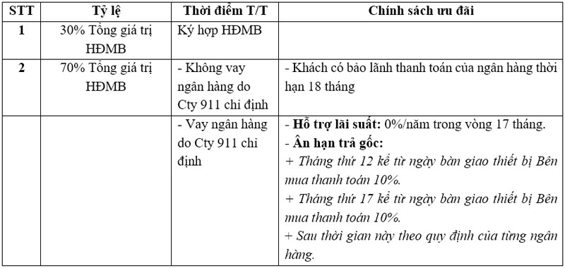 Công ty Cổ phần Tập đoàn 911 trân trọng thông báo đến Quý Khách hàng chương trình bán hàng lãi suất 0% trong 17 tháng. Thời gian chương trình từ 15/02/2022 đến hết ngày 31/12/2022.
