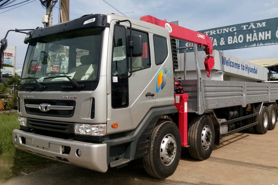 ✯ 3, Xe tải daewoo 4 chân cũ 16.2 Tấn Gắn Cẩu Unic URV554